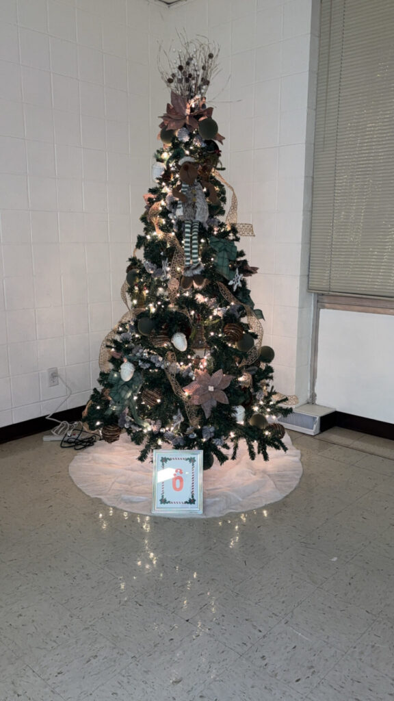 Decorated trees available for silent auction Santa & Friends Hot cocoa station Decorate a holiday cookie